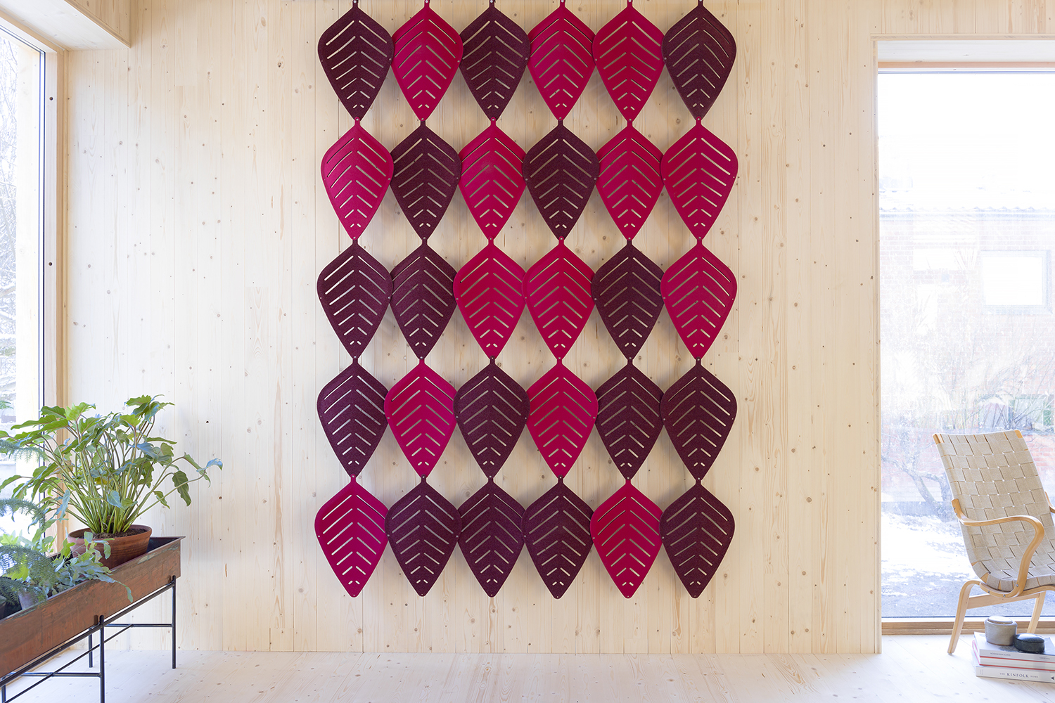 Airleaf gør det muligt at skabe separate områder med behagelig akustik, mens rummets åbenhed bevares. Du bestemmer selv graden af åbenhed alt efter hvordan de bladformede moduler kombineres i forskellige mønstre og formater.