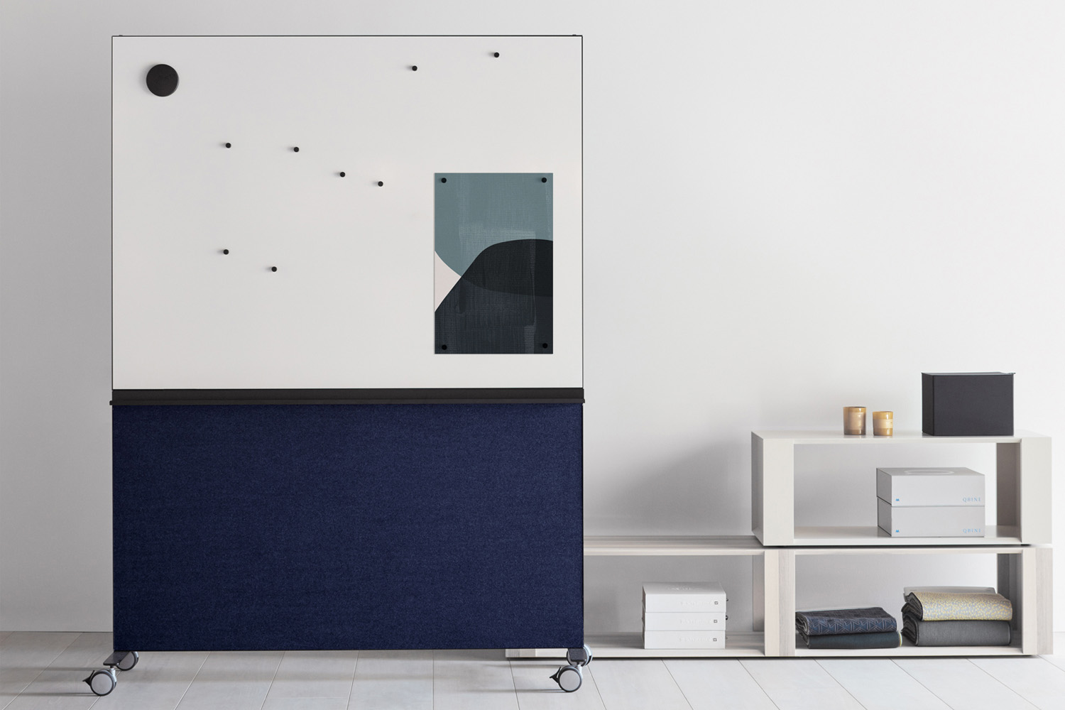 Alumi skærmen tilbyder en alsidig løsning til at skabe dynamiske og funktionelle rum i dit bibliotek. Den kombinerer tavle og lydabsorption i én, hvilket gør den ideel til gruppearbejde, præsentationer eller individuel studiebrug.