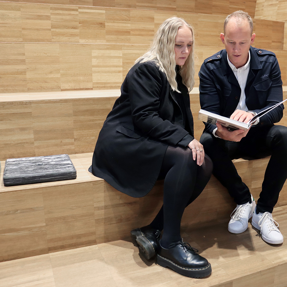 Puderne fås i flere marmorerede farver, som er inspireret af naturen, og er ideelle til brug på gulv, bænke, trapper osv.