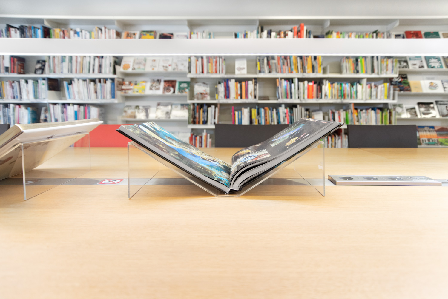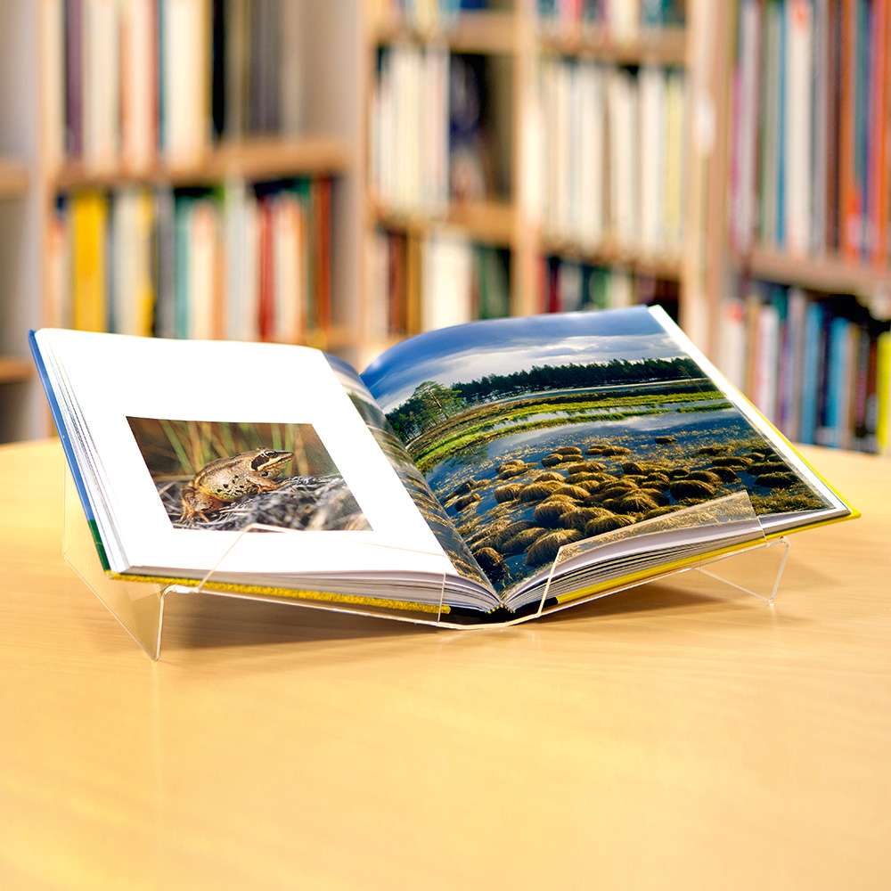 Et genialt design til udstilling af en opslået bog.