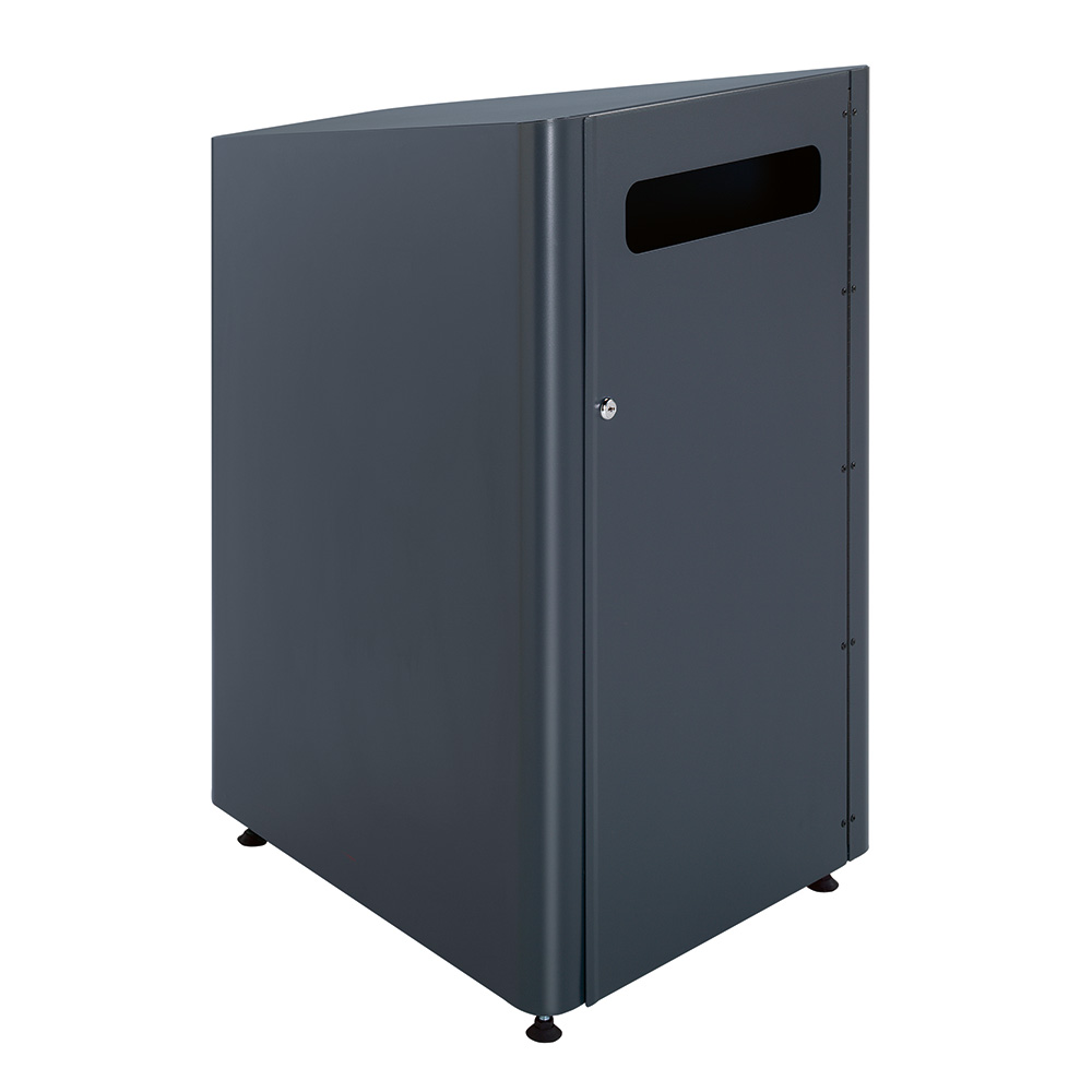 Låsbart skab udstyret med beslag nederst (tyverisikring). Leveres inkl. kurv på hjul og selvklæbende piktogram (CD/DVD og bøger).
