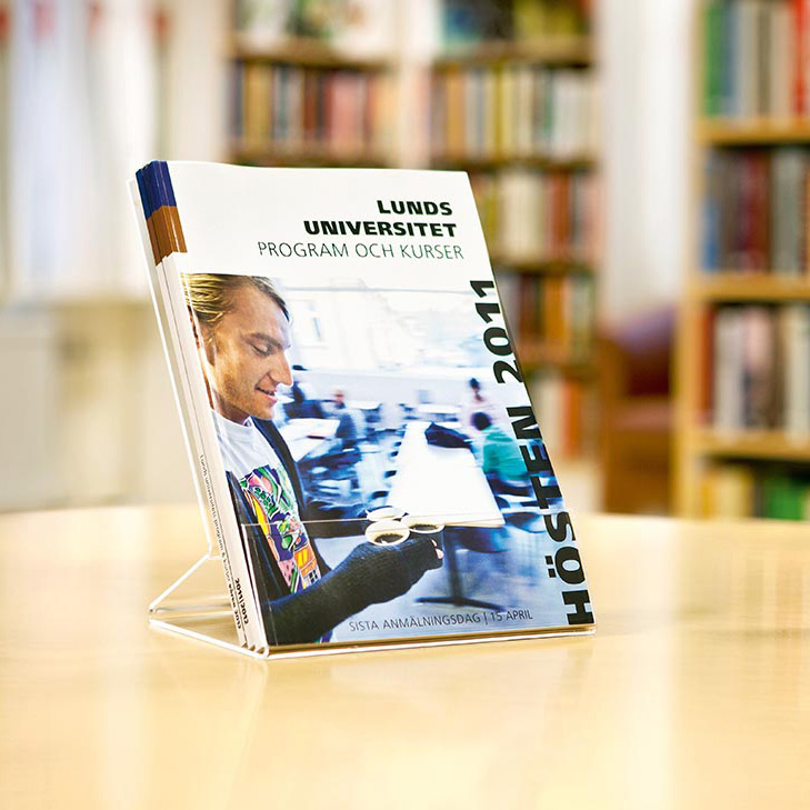 Populær og enkel brochureholder med bred ryg.