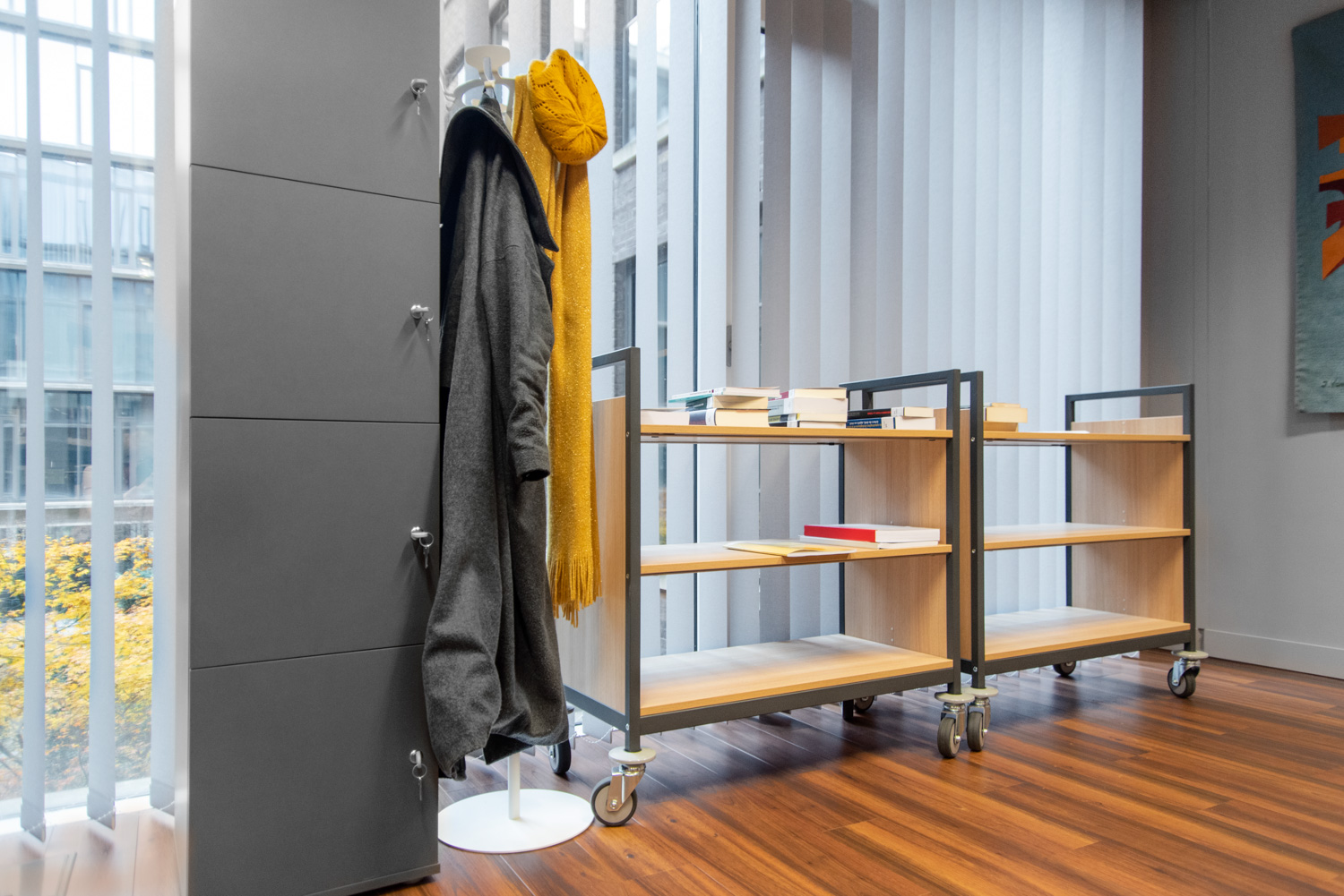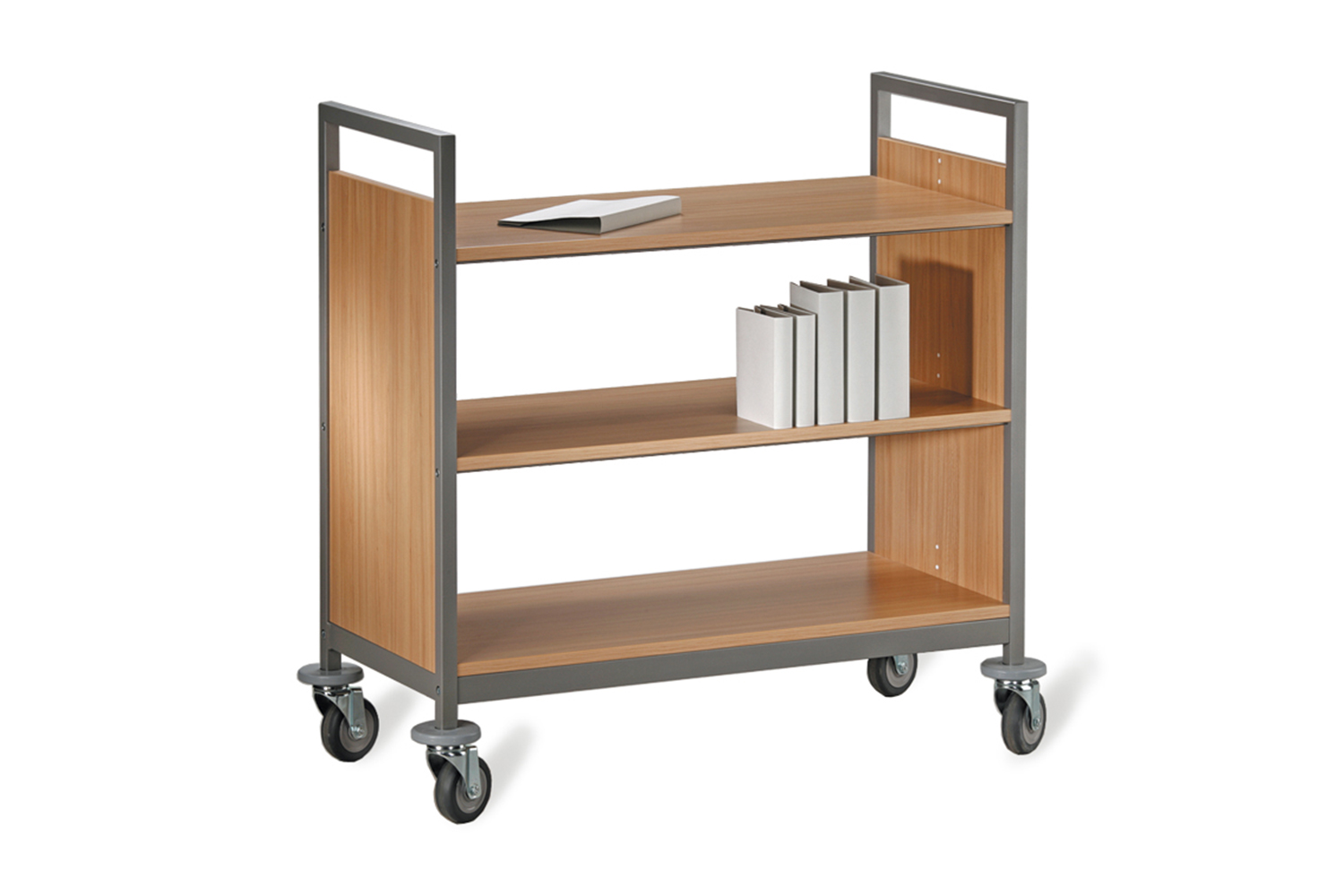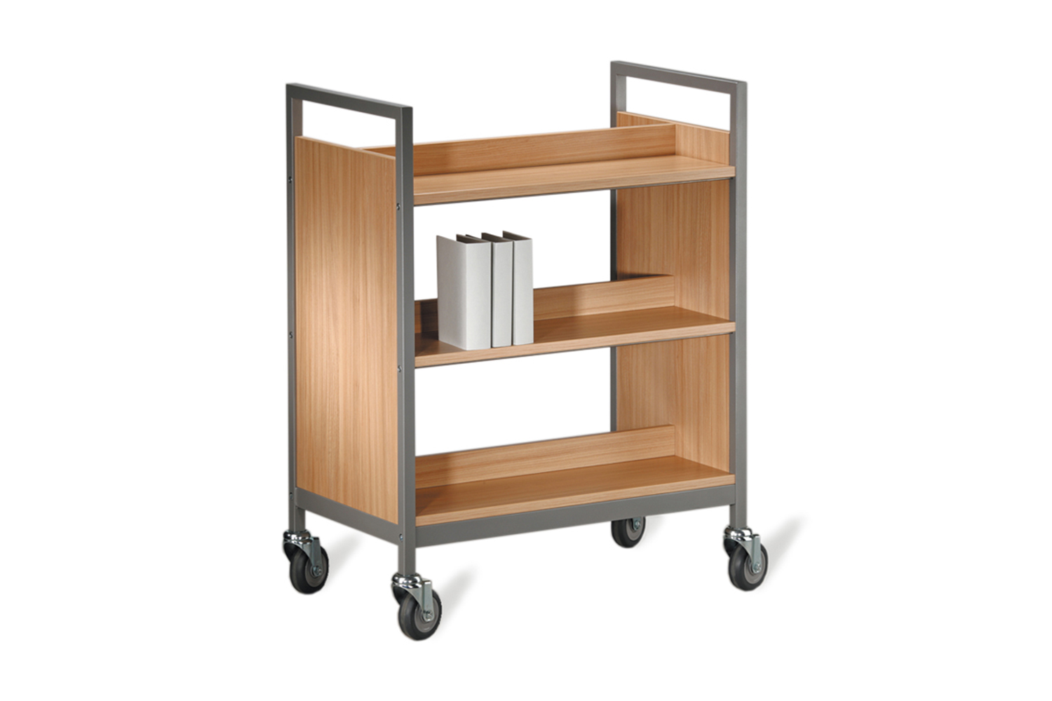 Denne bogvogns robuste og alsidige design gør, at den let kan tilpasses bibliotekets eller institutionens specifikke krav. De mange funktioner som faste eller flytbare delere, skrå eller lige hylder samt træ- eller metalhylder giver en multifunktionel bogvogn, der opfylder både de daglige gøremål og de mere specielle ønsker i et bibliotek.