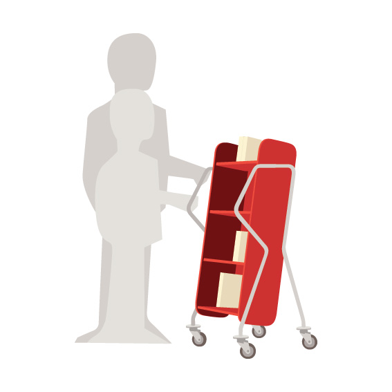 Bogvognens hældning sikrer stabil opbevaring og giver et godt overblik over de bøger, du skal håndtere.