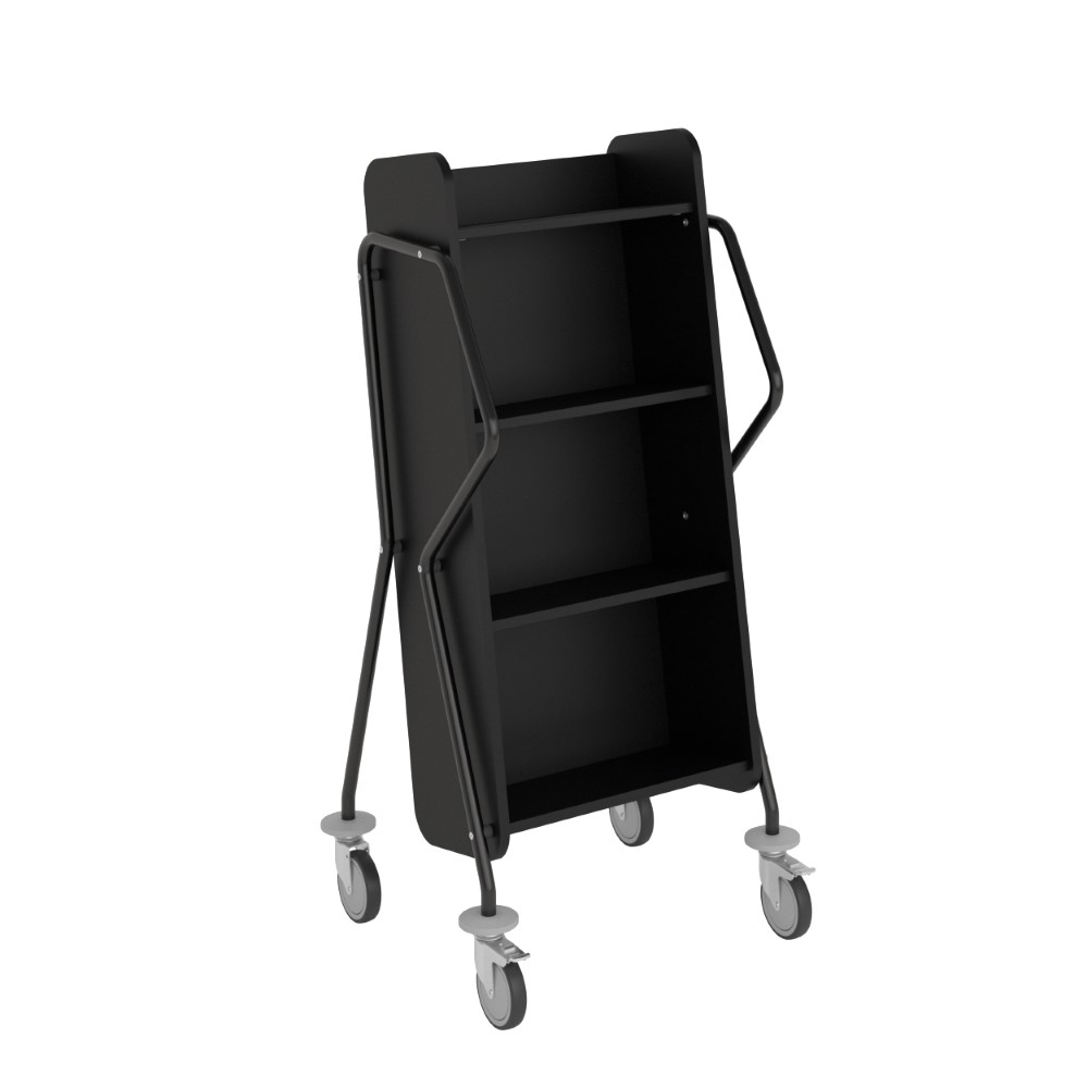 Bogvognens hældning sikrer stabil opbevaring og giver et godt overblik over de bøger, du skal håndtere.