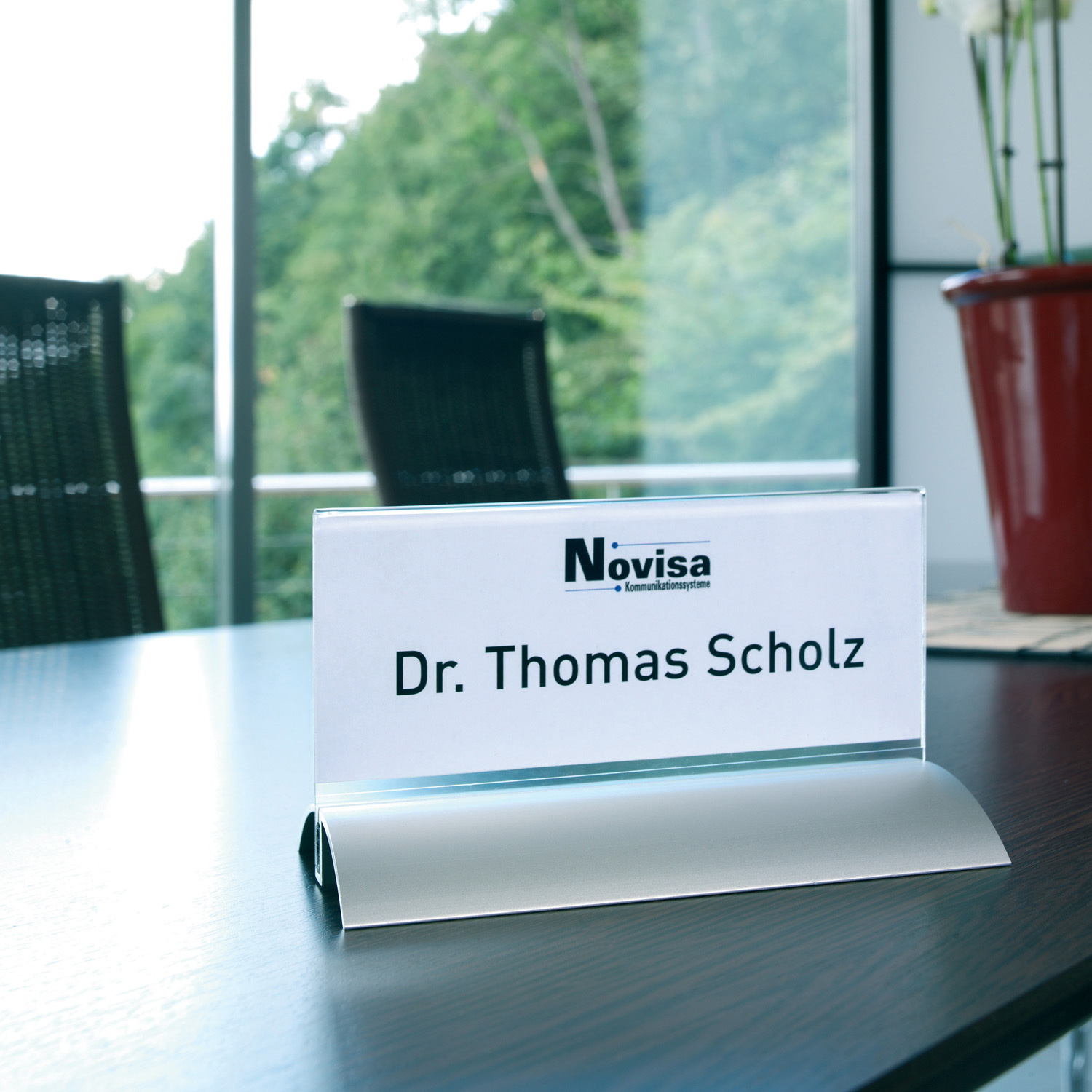 Eksklusiv dobbeltsidet skilteholder til bord, skranke, hylde, vinduer m.m.