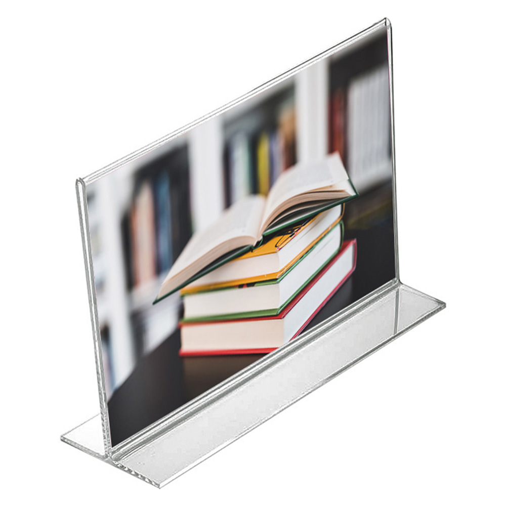 Praktisk dobbeltsidet stander til skilte og informationer til bord, skranke, hylde, vinduer m.m..