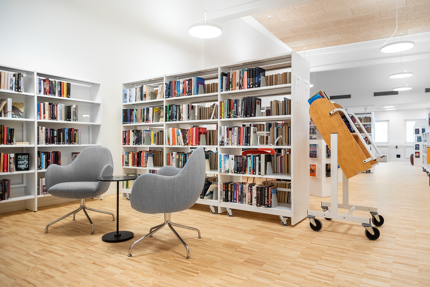 God højde reducerer slid på ryg og led. En velkommen transportvogn til alle biblioteker.