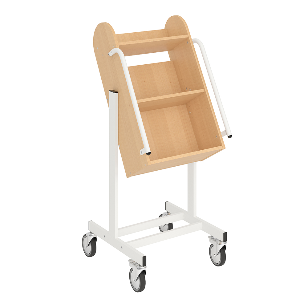 Bogvognens hældning sikrer stabil opbevaring og giver et godt overblik over de bøger, du skal håndtere.