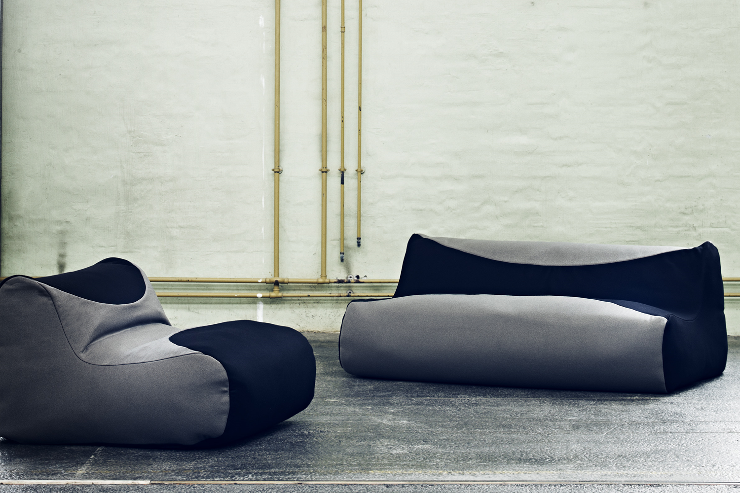 Fluid sofa og stol fra Softline har med inspiration i sækkestolen en behageligt form, som er yderst komfortabel at sidde i.