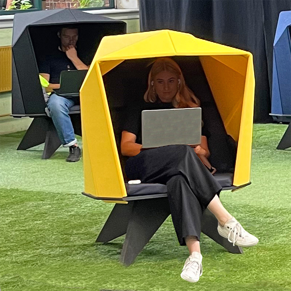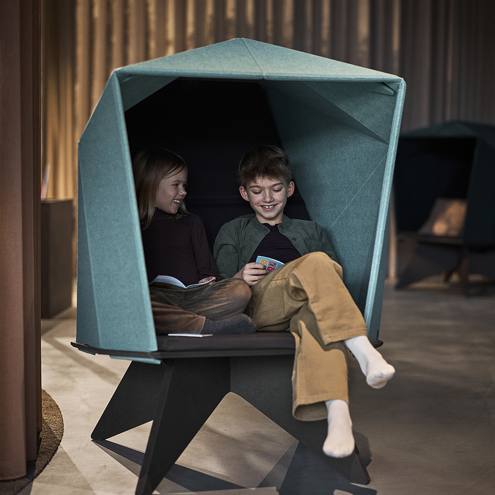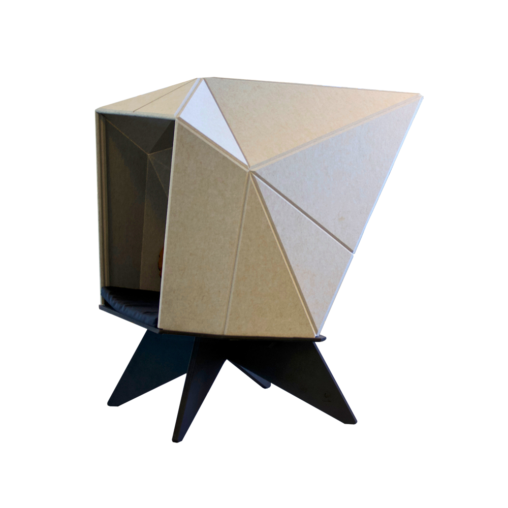 HabiCave er designet i Danmark. Det er et skulpturelt møbel designet med inspiration fra den japanske origami. Den enkle og gennemtænkte æstetik appellerer til sanserne, og det akustiske materiale er ikke kun med til at reducere støjniveauet inde i hulen, men også i rummet.