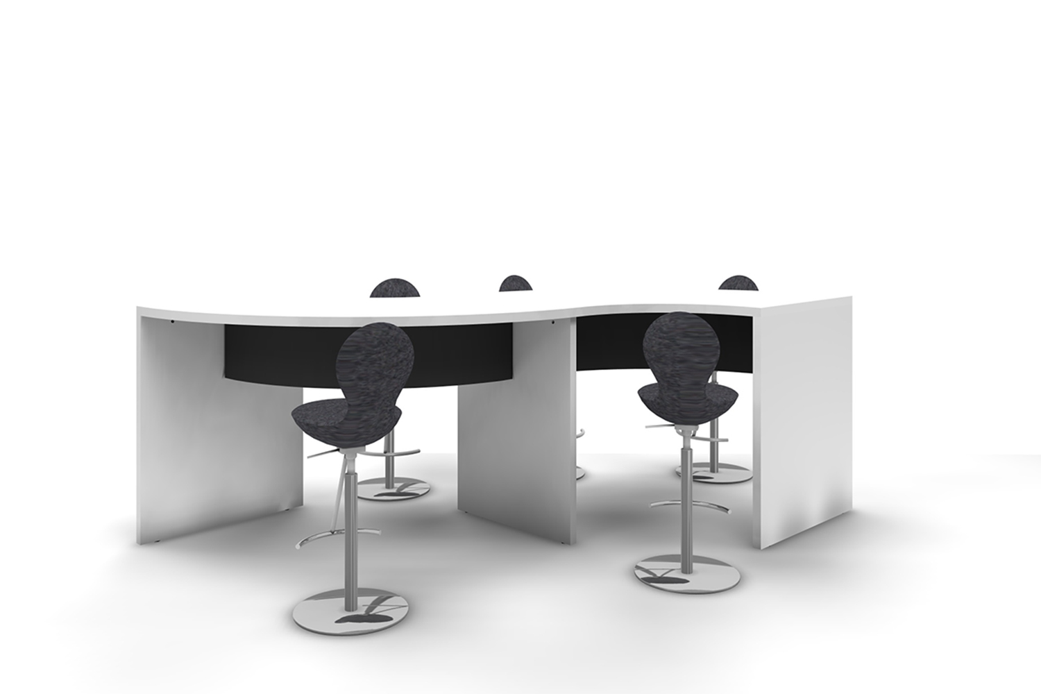 Twin: to buede borde, der former et ”s” med frontpanel placeret i midten, så bordet kan bruges fra begge sider.