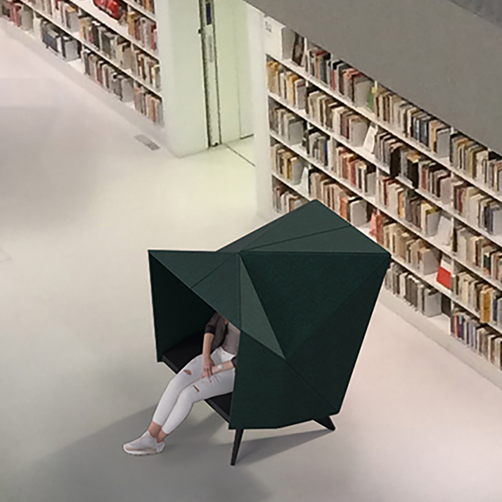 HabiCave rummer alt dette – og mere til. HabiCave er et skulpturelt møbel designet med inspiration fra den japanske origami og skandinavisk design, som appelerer specielt til de unge. Sammensætningen af det lækre design og materialebrug har blandt andet ført til en nominering til Danish Design Award 2021 i kategorien ”Better Learning”.