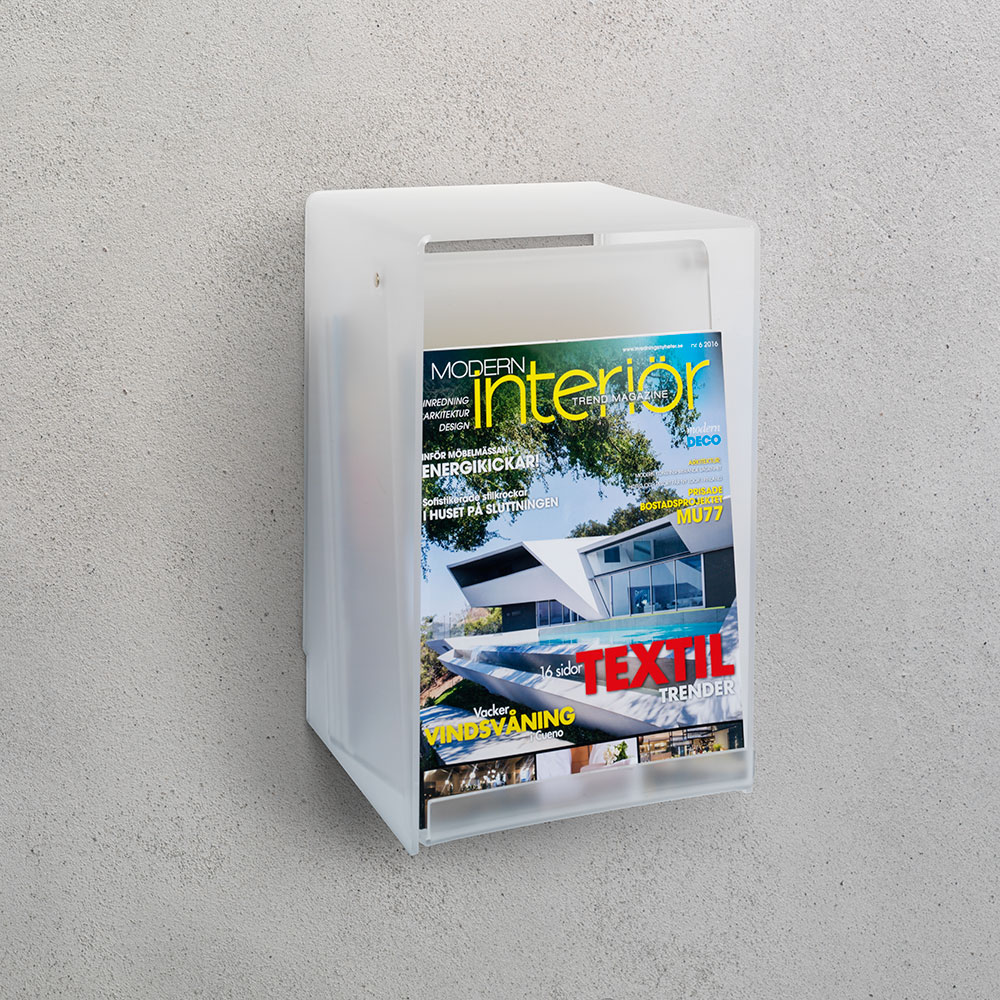 Magasinbokse i akryl til udstilling og opbevaring af magasiner.