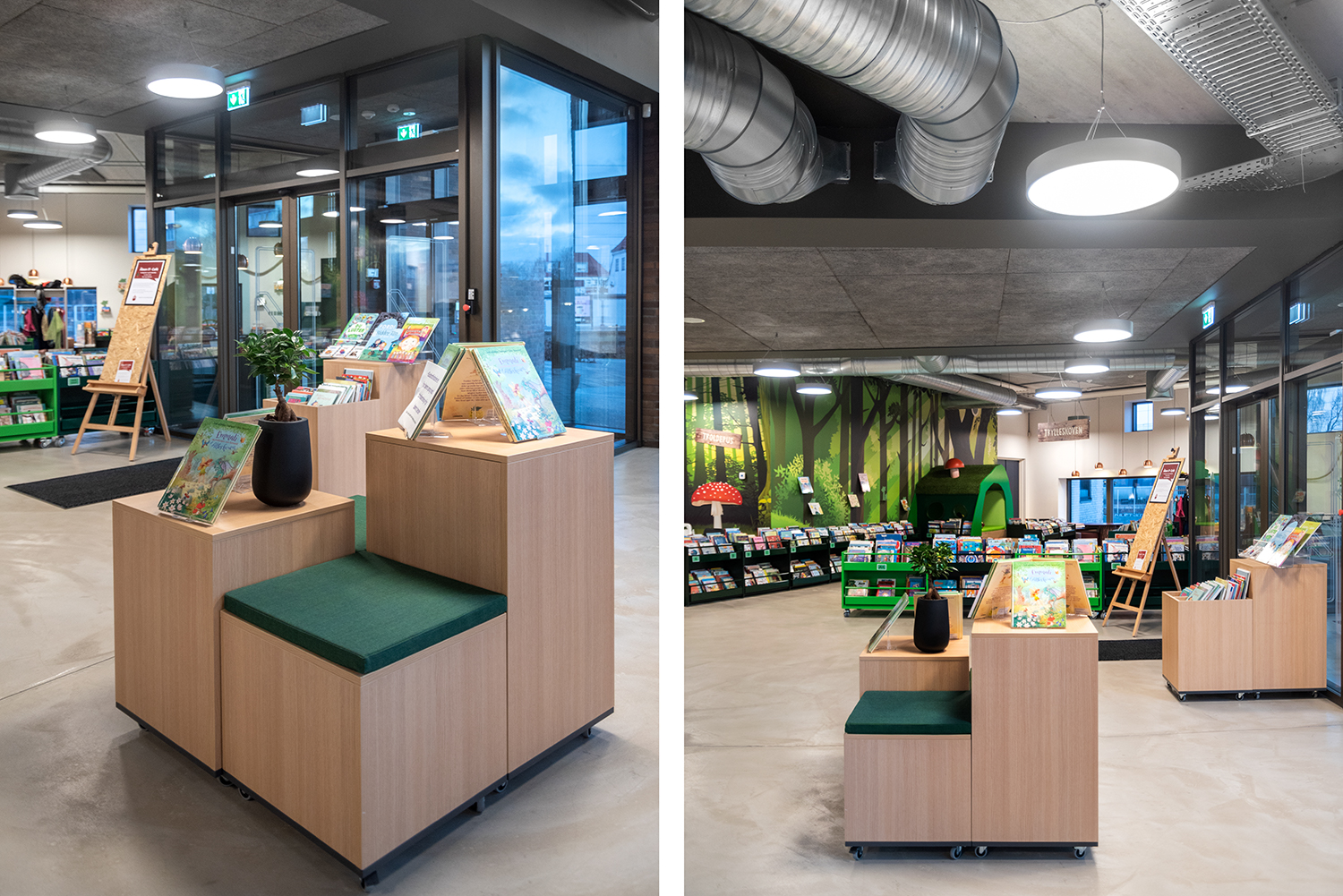 Velegnet til at skabe små og store øer i biblioteket. Den simple form passer godt ind i de fleste miljøer og sætter fokus på bøgerne.