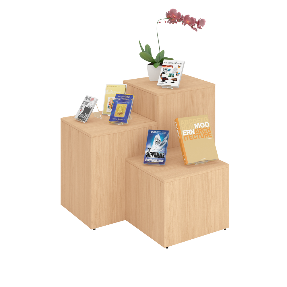 Maria er en serie af podier med krybbe, der fås i 2 størrelser (50 cm og XL 64 cm) og i 3 forskellige højder (Mini, Midi og Maxi) til fleksibel biblioteksindretning.
