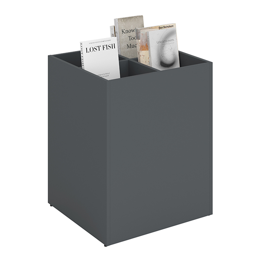Velegnet til at skabe små og store øer i biblioteket. Den simple form passer godt ind i de fleste miljøer og sætter fokus på bøgerne.