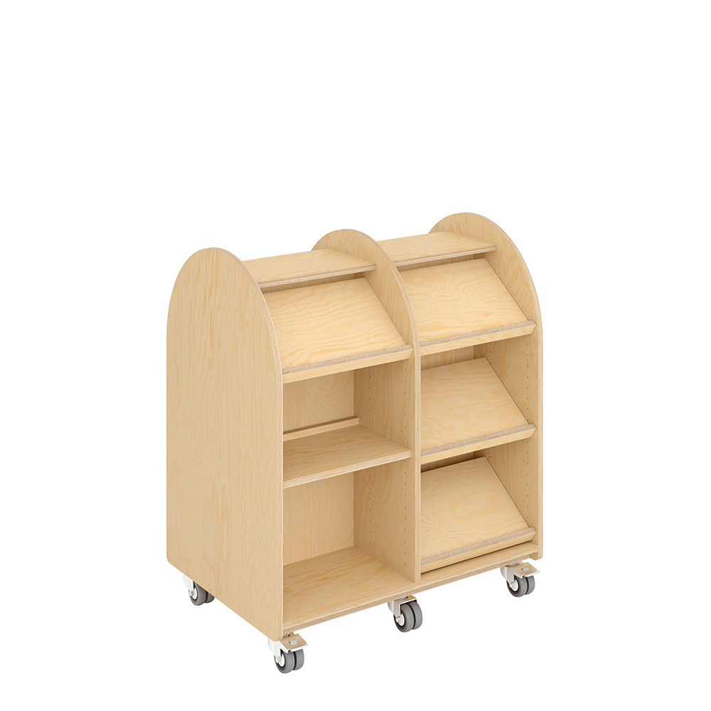 Det er let at ændre en lige hylde til en skråhylde. Placer hyldebærerne, så de står diagonalt i gavlen i stedet for lige. Hylden er den samme. Memphis er let at flytte rundt på med gode kraftige dobbelthjul. Brugervenlighed er i fokus.