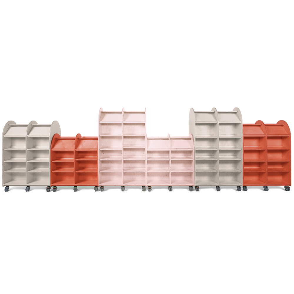 Det er let at ændre en lige hylde til en skråhylde. Placer hyldebærerne, så de står diagonalt i gavlen i stedet for lige. Hylden er den samme. Memphis er let at flytte rundt på med gode kraftige dobbelthjul. Brugervenlighed er i fokus.