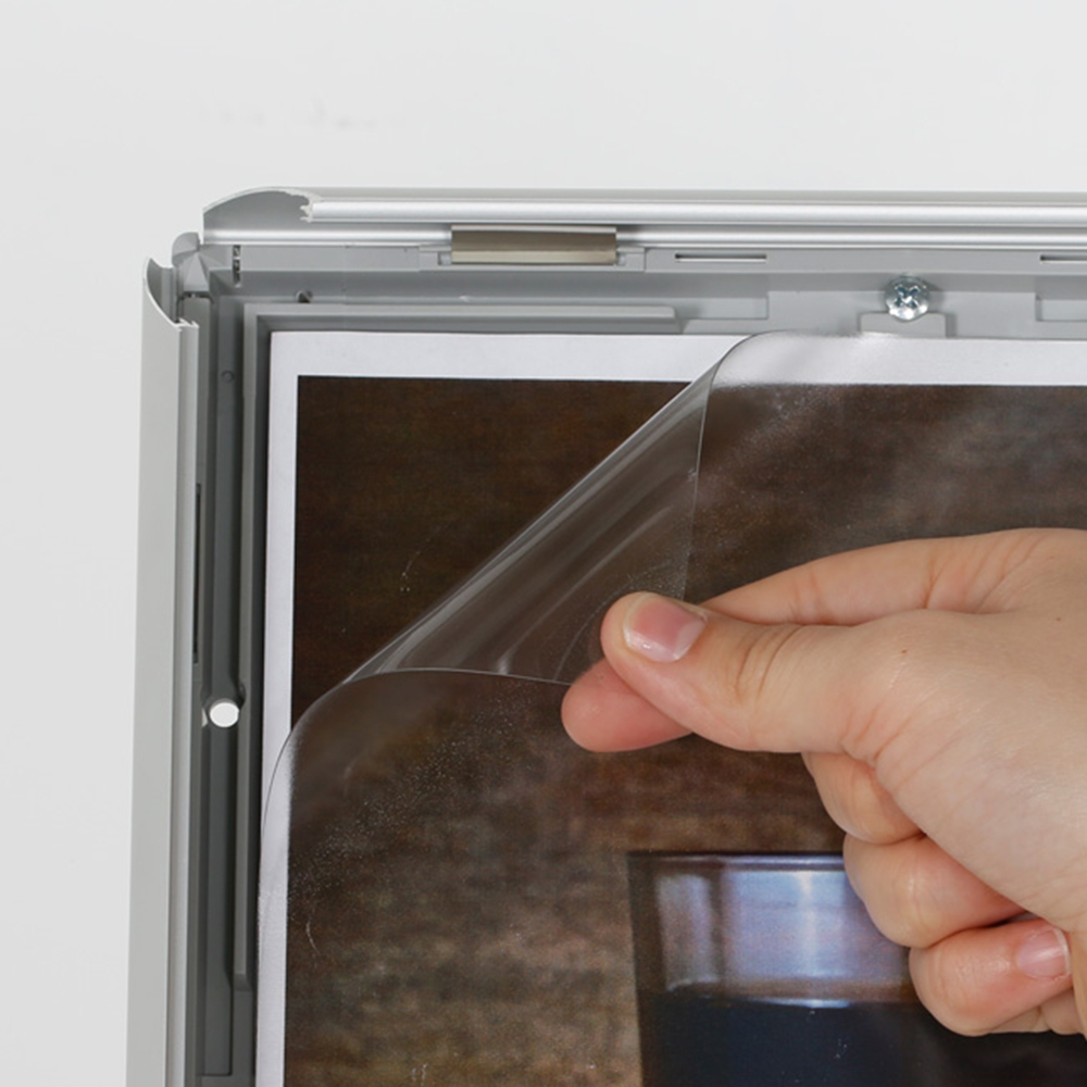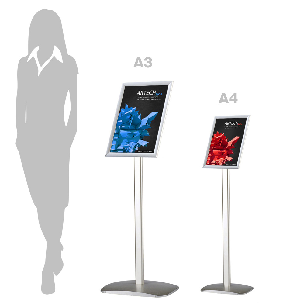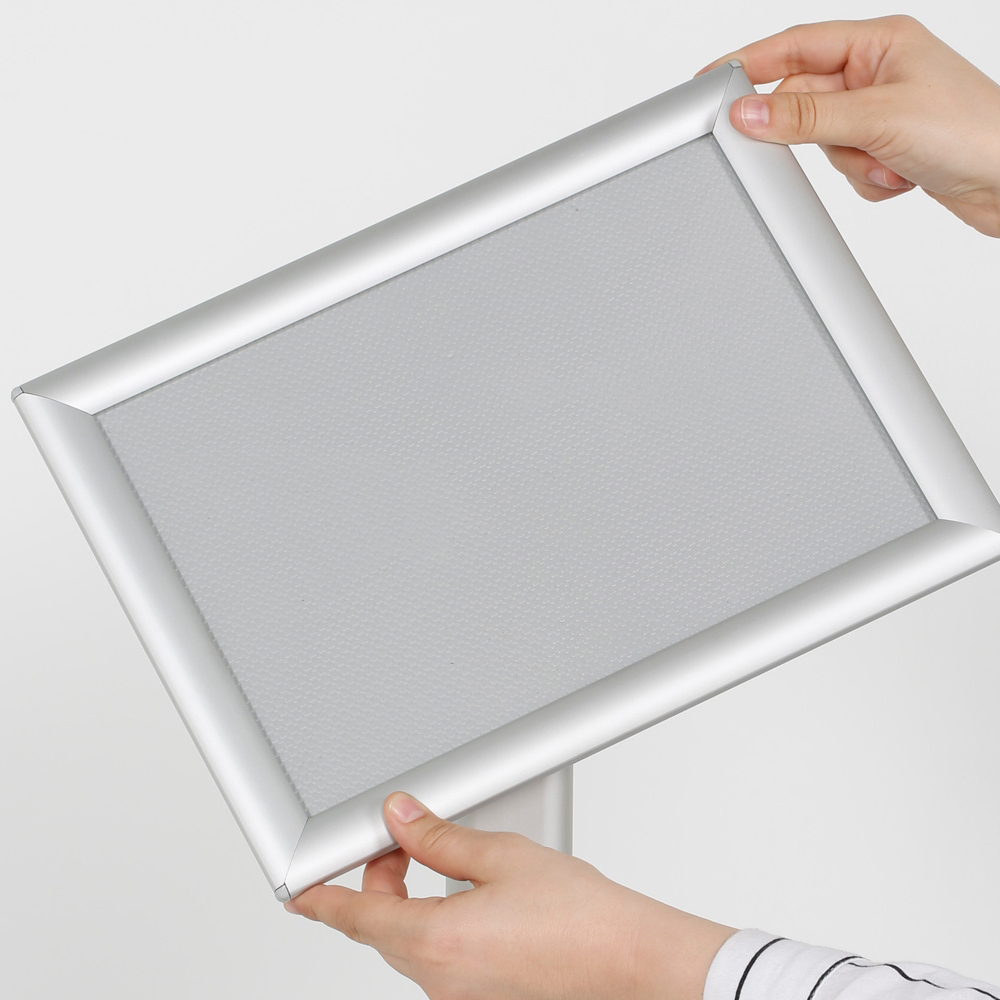 Klikramme med 25 mm profil. En solid fod og anti-refleks frontplade gøre denne infostander anvendelig i hele biblioteket eller i receptionsområdet.