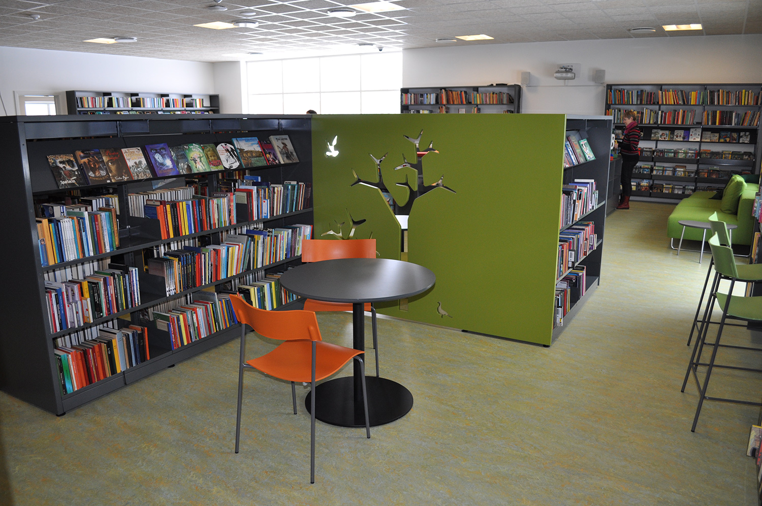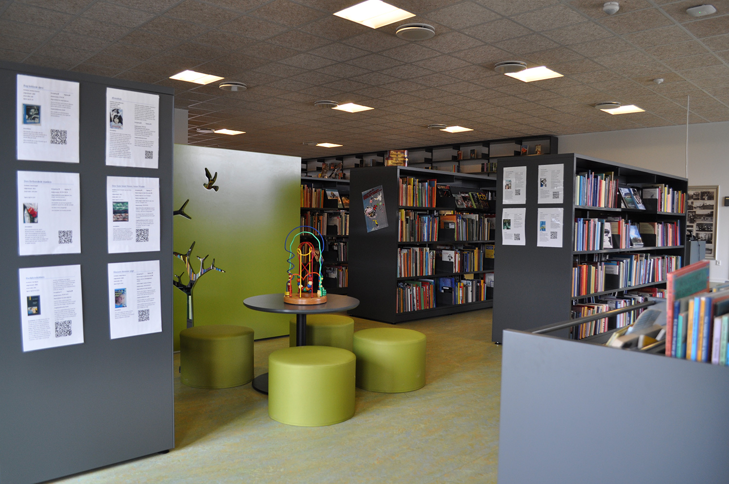 Byen havde ingen offentlige biblioteker, men nu har de et brandnyt kombineret skole- og folkebibliotek. Biblioteket er ikke stort, men rigt på detaljer.