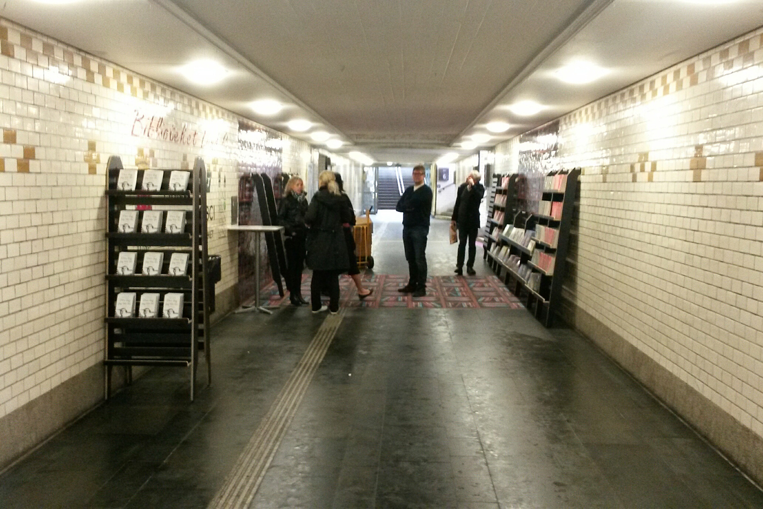 Onsdag morgen, da det midlertidige bibliotek var blevet oprettet, blev vi mødt af lutter glade råb fra både store og små passagerer. At man kan lave et midlertidigt bibliotek på et sted, hvor tusindvis af mennesker kommer forbi hver dag er en fantastisk idé! I udlånet er der noget for alle, lige fra paperbacks til børnebøger, som på et normal bibliotek.