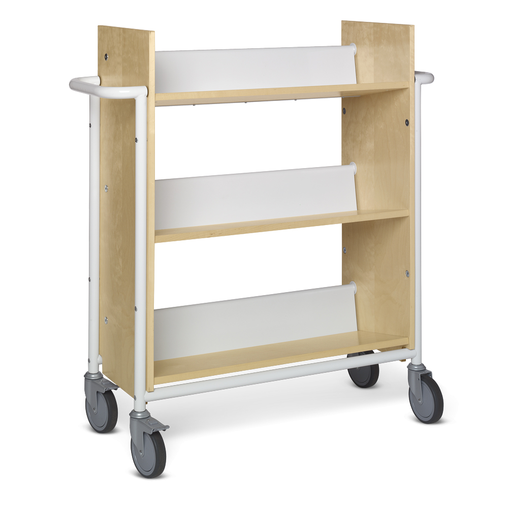 Funktionel, enkeltsidet vogn med 3 faste bagudvippede hylder, som sikrer stabil opbevaring.