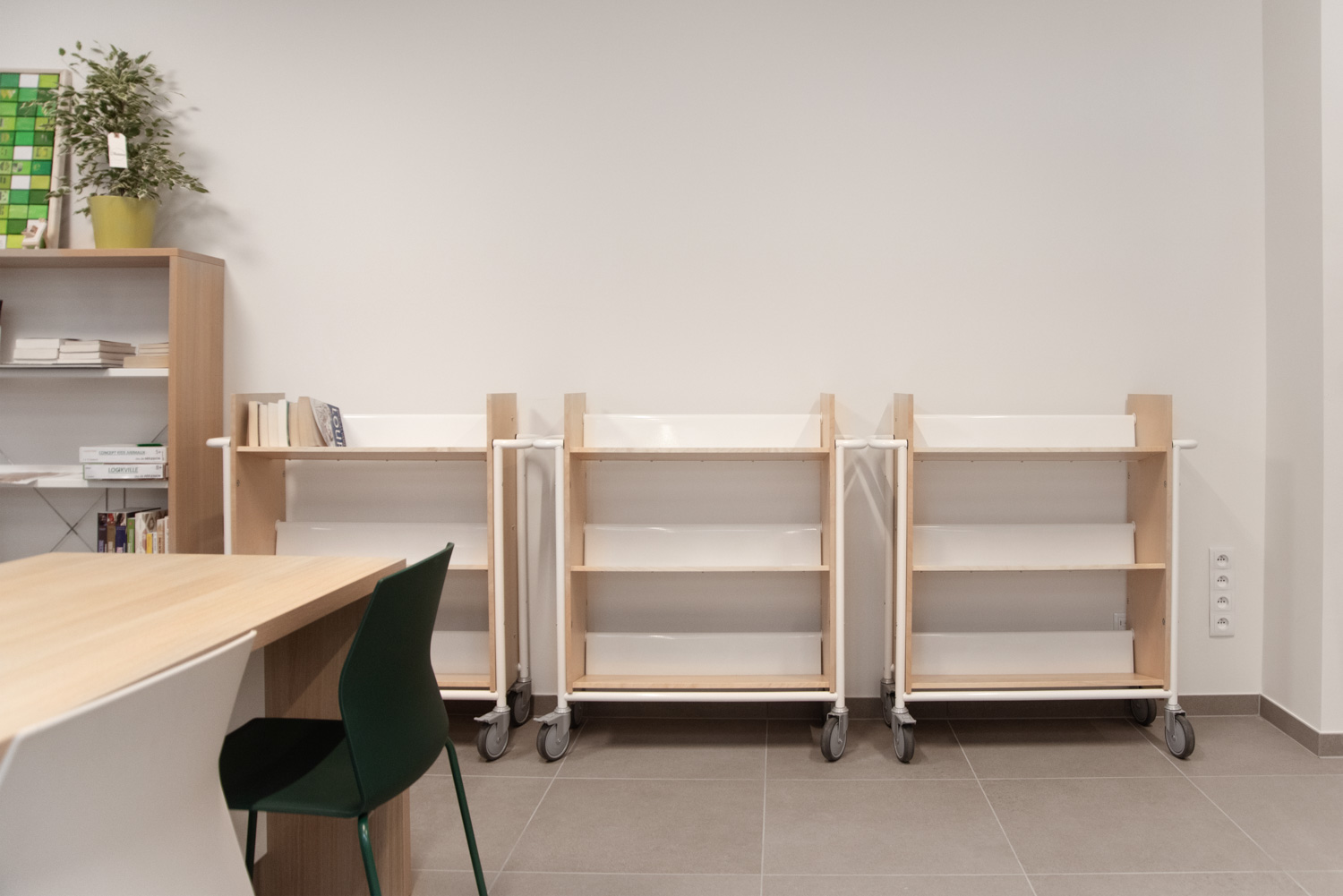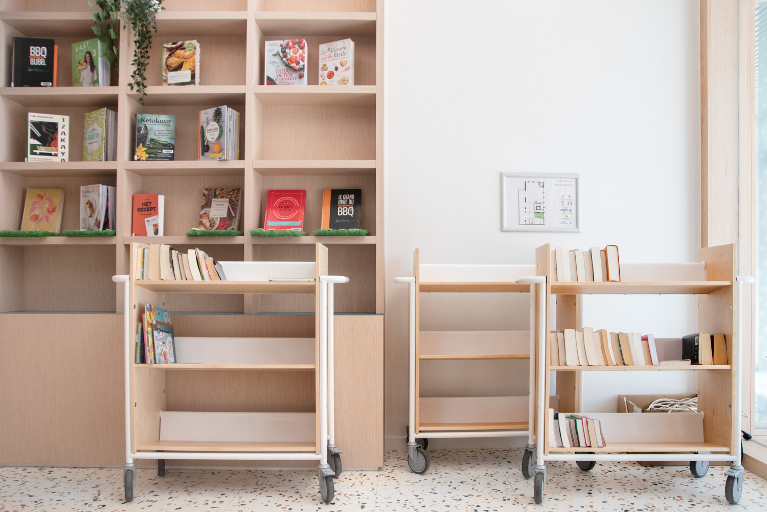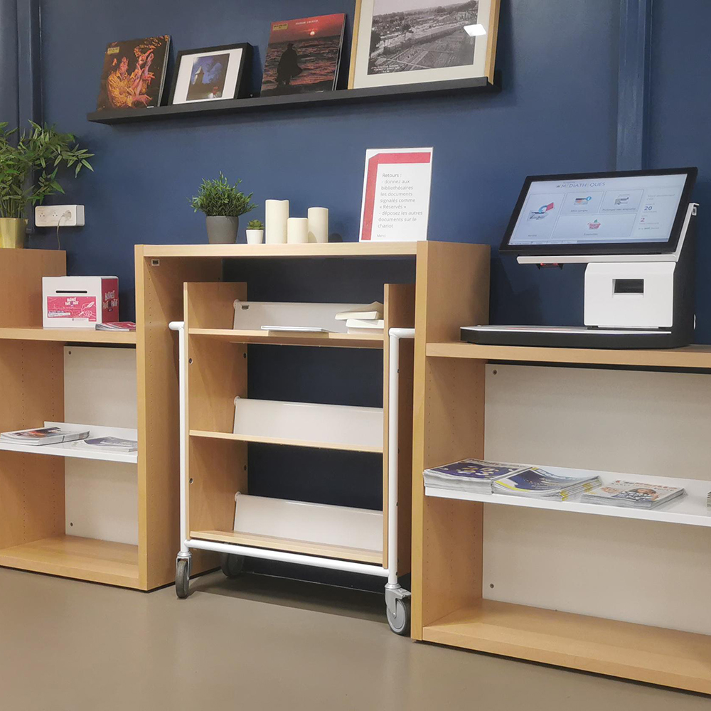 Denne bogvogn kan bruges som et mini reolsystem, der kan køres rundt i biblioteket efter behov.