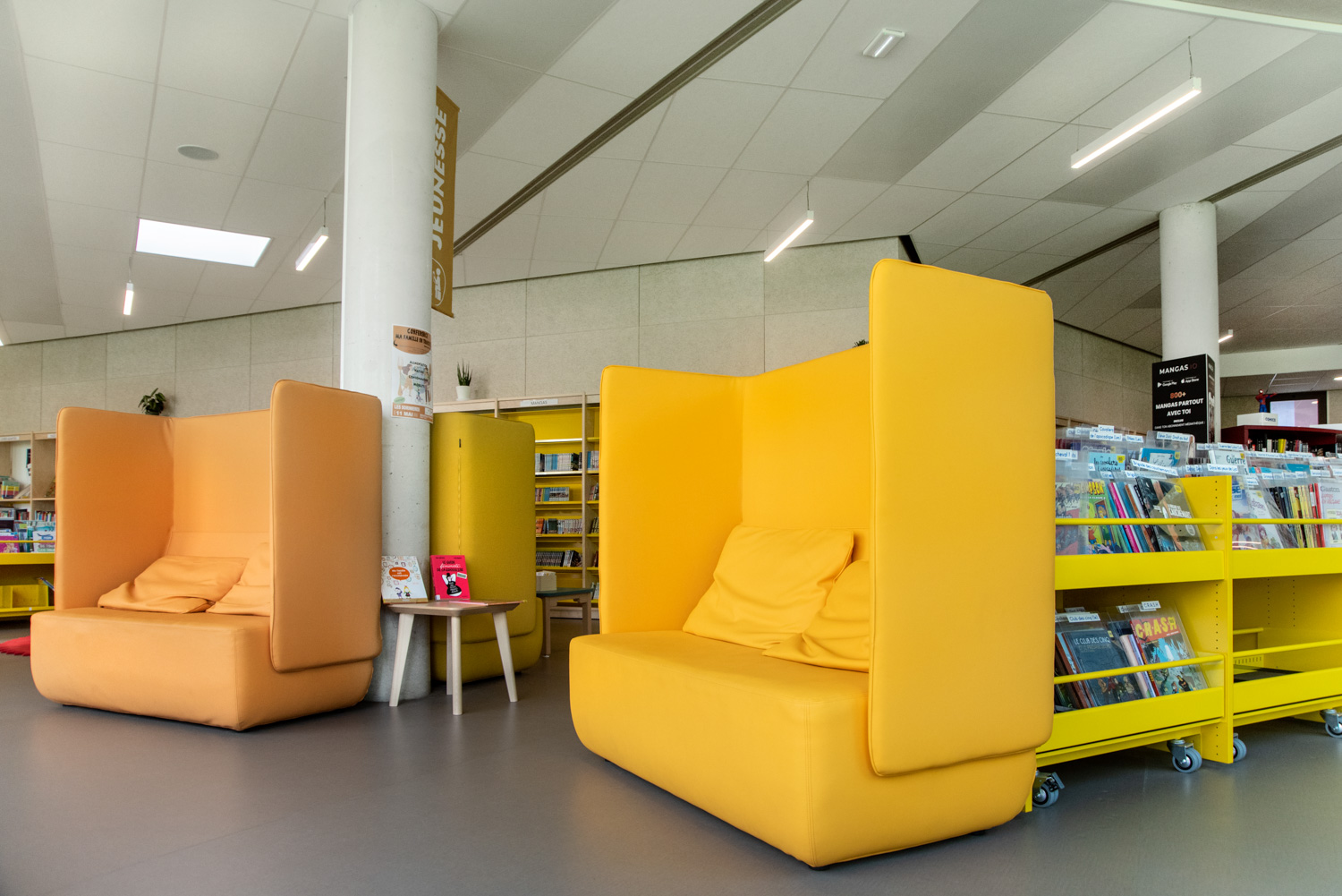 Let og moderne møbelserie til biblioteksindretningen fra Softline