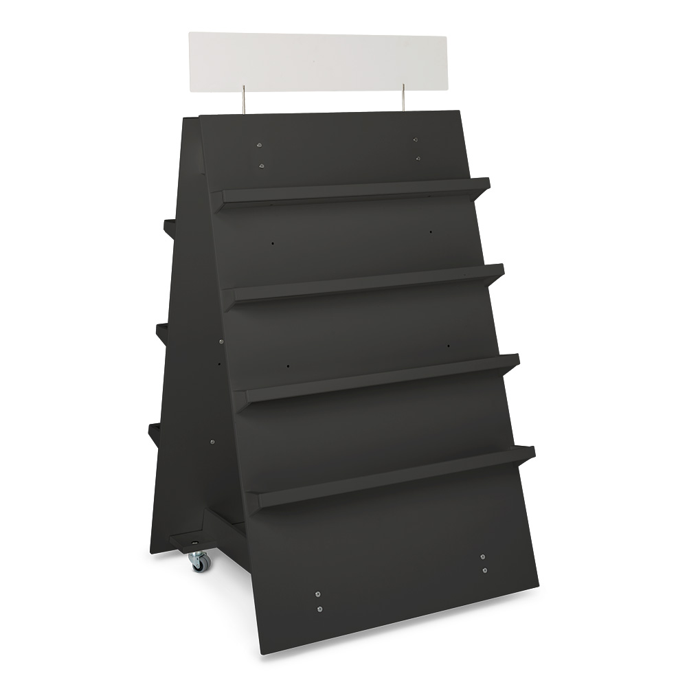 Solidt og mobilt udstillingsmøbel som A-skilt