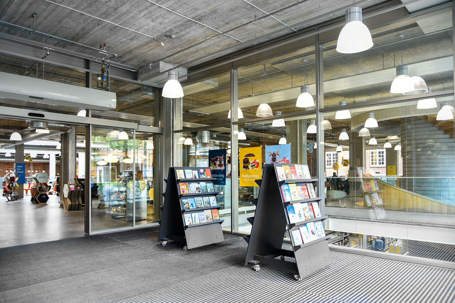 Ideel i åbne områder eller indgange, hvor mindre udstillingsmøbler har det med at forsvinde. Placer dem enkeltvis eller i grupper for f.eks. at skabe en komplet udstillingsvæg.