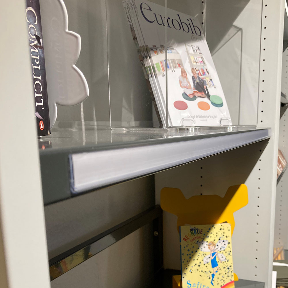 Selvklæbende etiketholder til mærkning og scanning af f.eks. stregkoder på hyldekanter, kasser, osv.