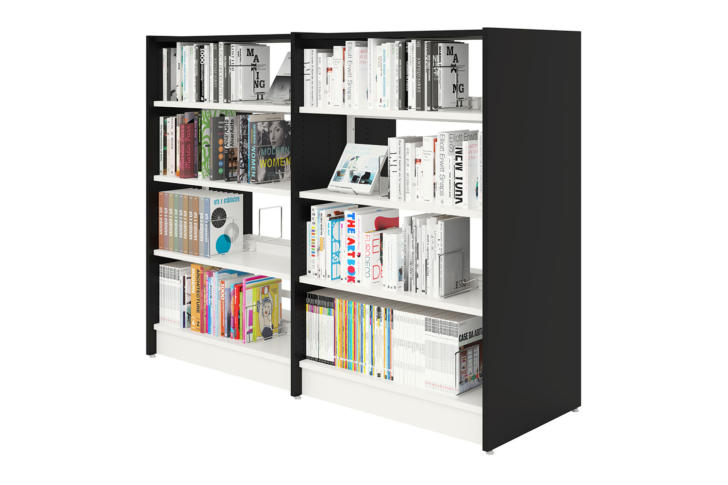 Slimline reolen leveres i de to varianter enkelt- eller dobbeltsidet. Systemet fås i en standardudgave, men det er også muligt at skabe et individuelt tilrettet reolsystem, der passer til netop dit biblioteks krav og behov.