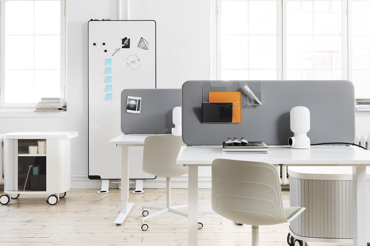 Skab et funktionelt, akustisk miljø med Softline-bordskærme! Bordskærmen består af en lydabsorberende fyldning monteret i en massiv træramme. Skærmen er polstret med stof på begge sider.