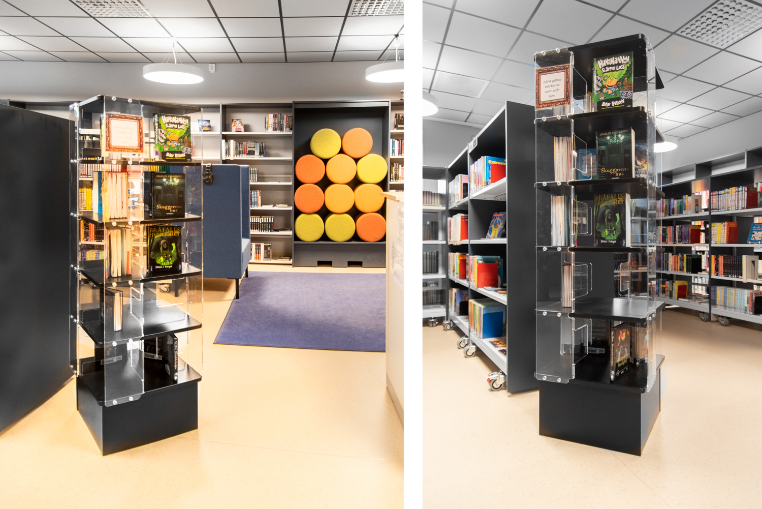 Fritstående tårn til display er den perfekte løsning, når du vil fremhæve og have udstilling af bøger og andre medier.