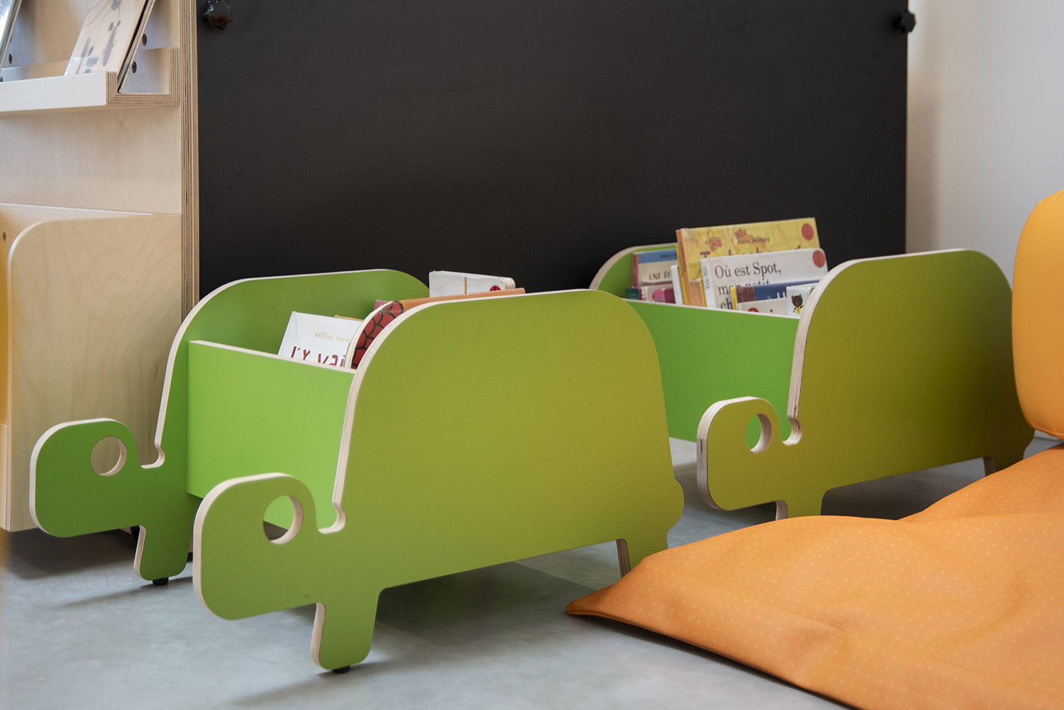 Vi har anstrengt os til det yderste for at udvikle en kollektion af børnemøbler specielt udformet til biblioteker og andre læringsmiljøer. Børnemøbler hvor legende form, finurlige funktioner, solid konstruktion og gode materialevalg forenes med omsorg for såvel brugerne som miljøet.