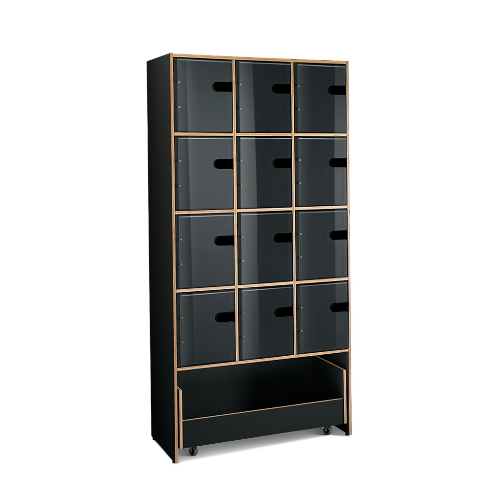Levers med gummimåtte, der holder medierne oprejst og forhindrer dem i at glide, og plads til stående magasiner i A4 format.