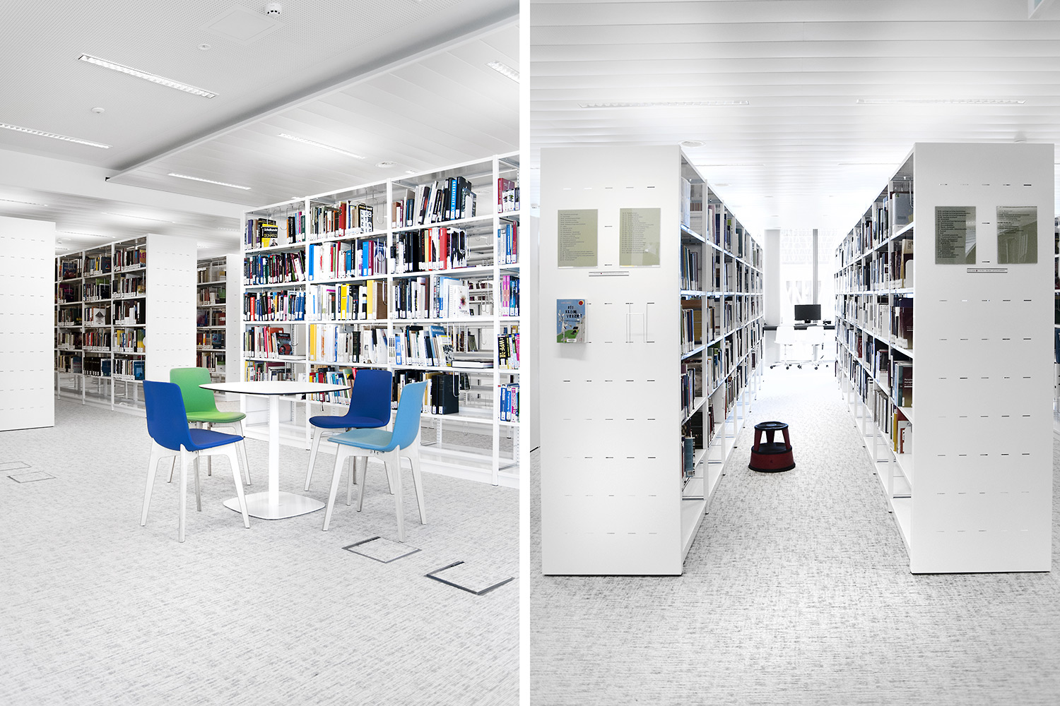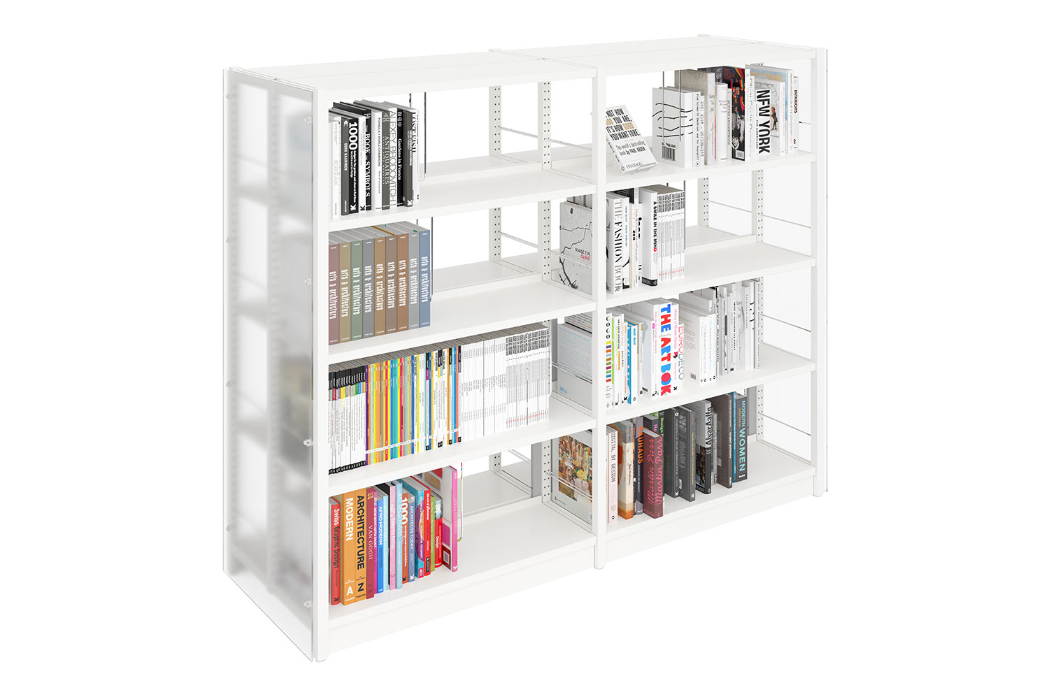 Uniflex stålreolen fås enkelt- eller dobbeltsidet, begge med mulighed for at øge højden af gavlene fra 2250 mm (standard) til 3675 mm (maksimum). Hylder fås i både stål og træ, og flere funktioner kan tilføjes, så det passer til netop dit bibliotek.