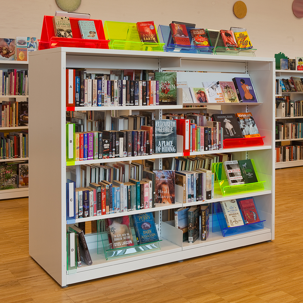 Holderen kan placeres overalt for at udstille bøger, tidsskrifter og brochurer på den praktiske forkant. “Lufthullet” kan også bruges til foldere og information.