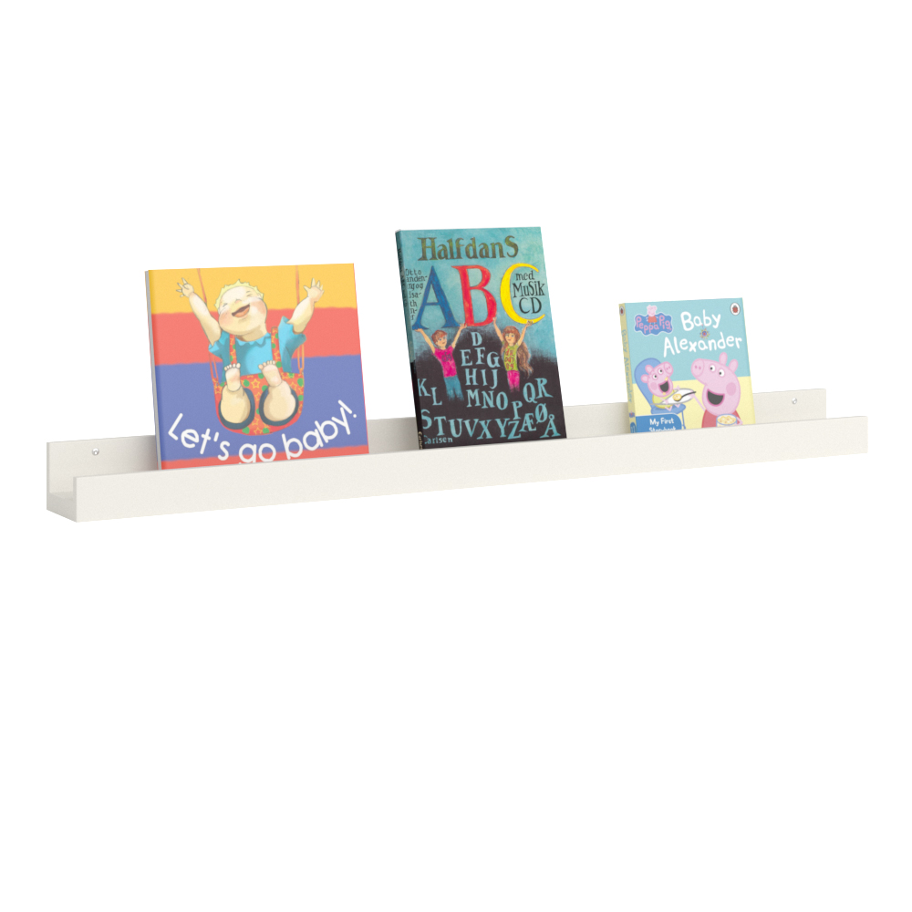 Udstillingshylde med frontkant. God til udstilling af forskellige medier.
